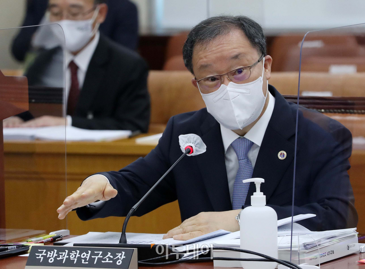 남세규 국방과학연구소장이 20일 서울 여의도 국회에서 열린 국방위원회의 방위사업청, 국방과학연구소 등에 대한 국정감사에 출석해 의원 질의에 답하고 있다.
