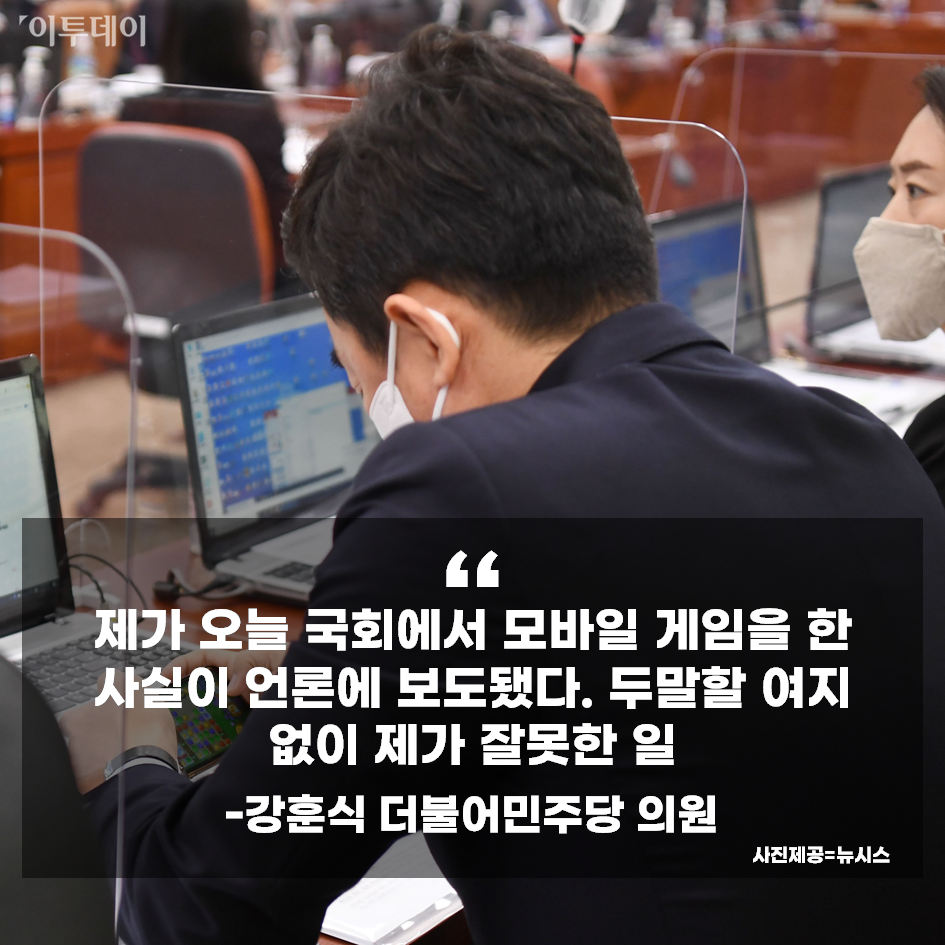 강훈식 의원은 22일 자신의 페이스북에 “오늘 제가 국회에서 모바일 게임을 한 사실이 언론에 보도됐다”면서 “죄송하다. 두말할 여지 없이 잘못한 일”이라고 사과문을 올렸습니다.