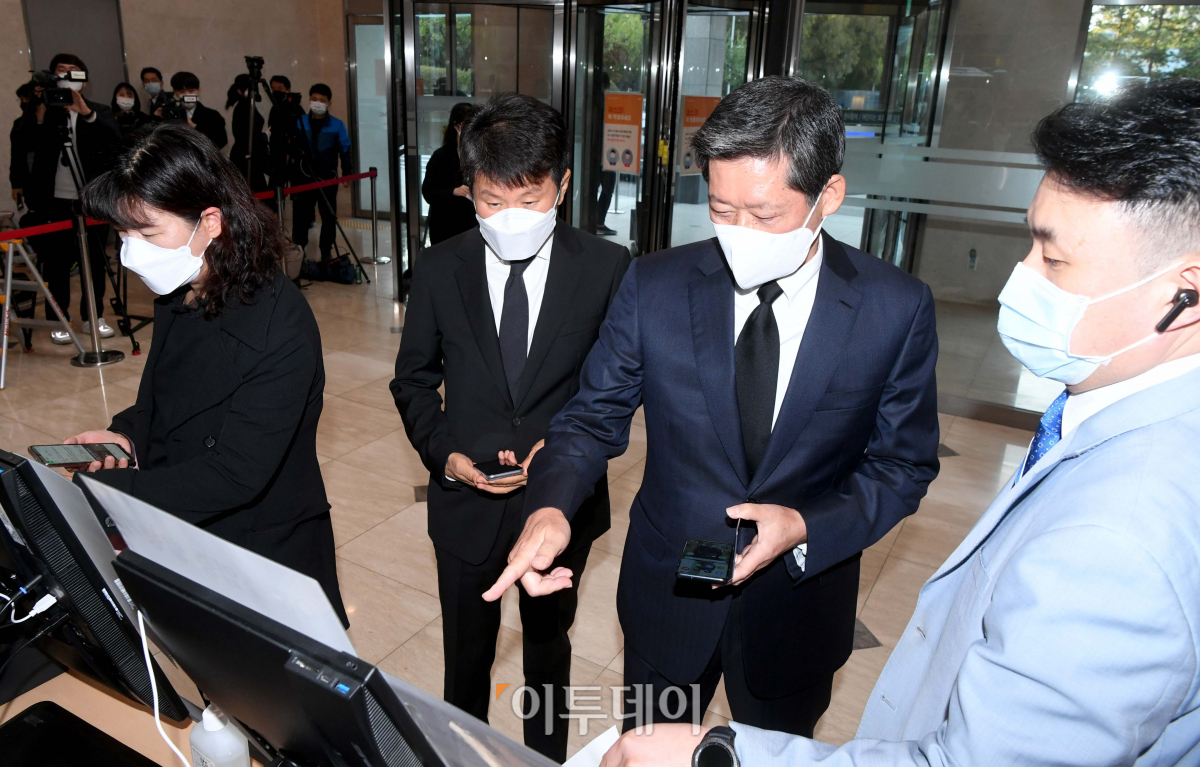 이건희 삼성그룹 회장이 별세한 25일 서울 강남구 삼성서울병원 장례식장에 마련된 이 회장의 빈소에 정몽윤 현대해상 회장과 정몽규 HDC 회장이 들어서고 있다.