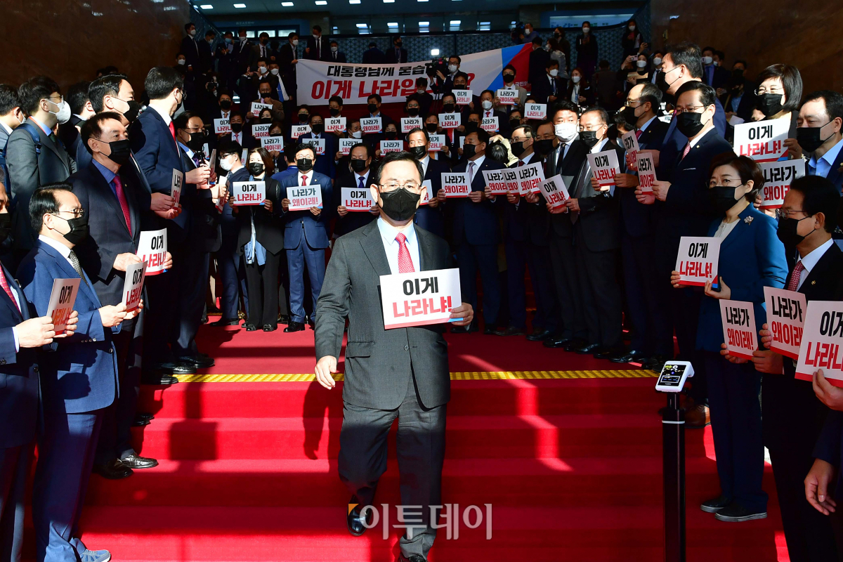 [포토] 피켓 들고 구호 외치는 국민의힘