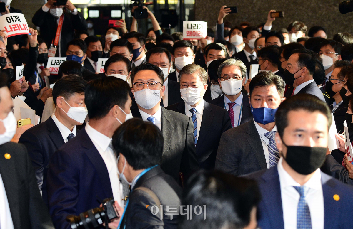 [포토] 국민의힘 항의속 본회의장 향하는 문재인 대통령