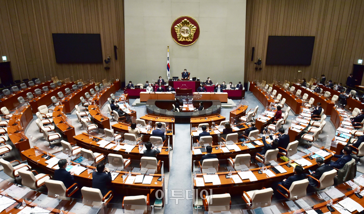 정성호 위원장이 2일 서울 여의도 국회 본관 예결회의장에서 열린 제382회 국회(정기회) 제4차 예산결산특별위원회, 2021년도 예산안 및 기금운용계획안에 대한 공청회를 주재하고 있다.