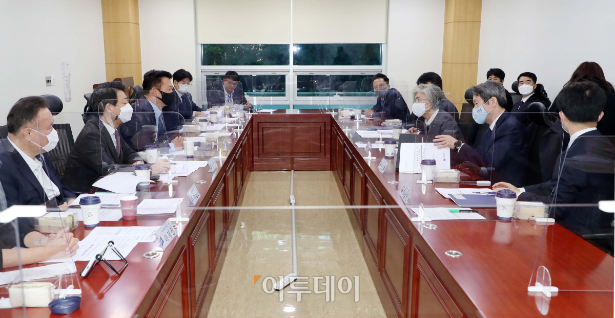 3일 오전 서울 여의도 국회 의원회관에서 송영길 국회 외교통일위원장과 강경화 외교부 장관, 이인영 통일부 장관 등이 참석한 가운데 더불어민주당 외교통일위원회 당정협의가 진행되고 있다.