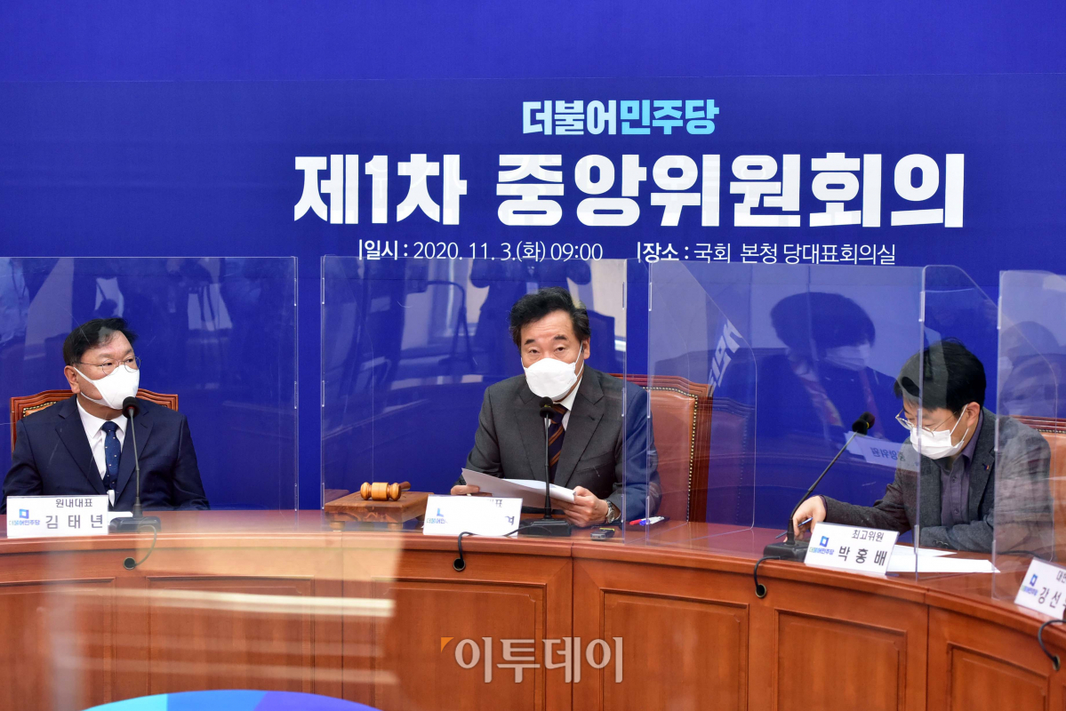 3일 오전 국회에서 열린 더불어민주당 제1차 중앙위원회의에서 이낙연 대표가 발언을 하고 있다.