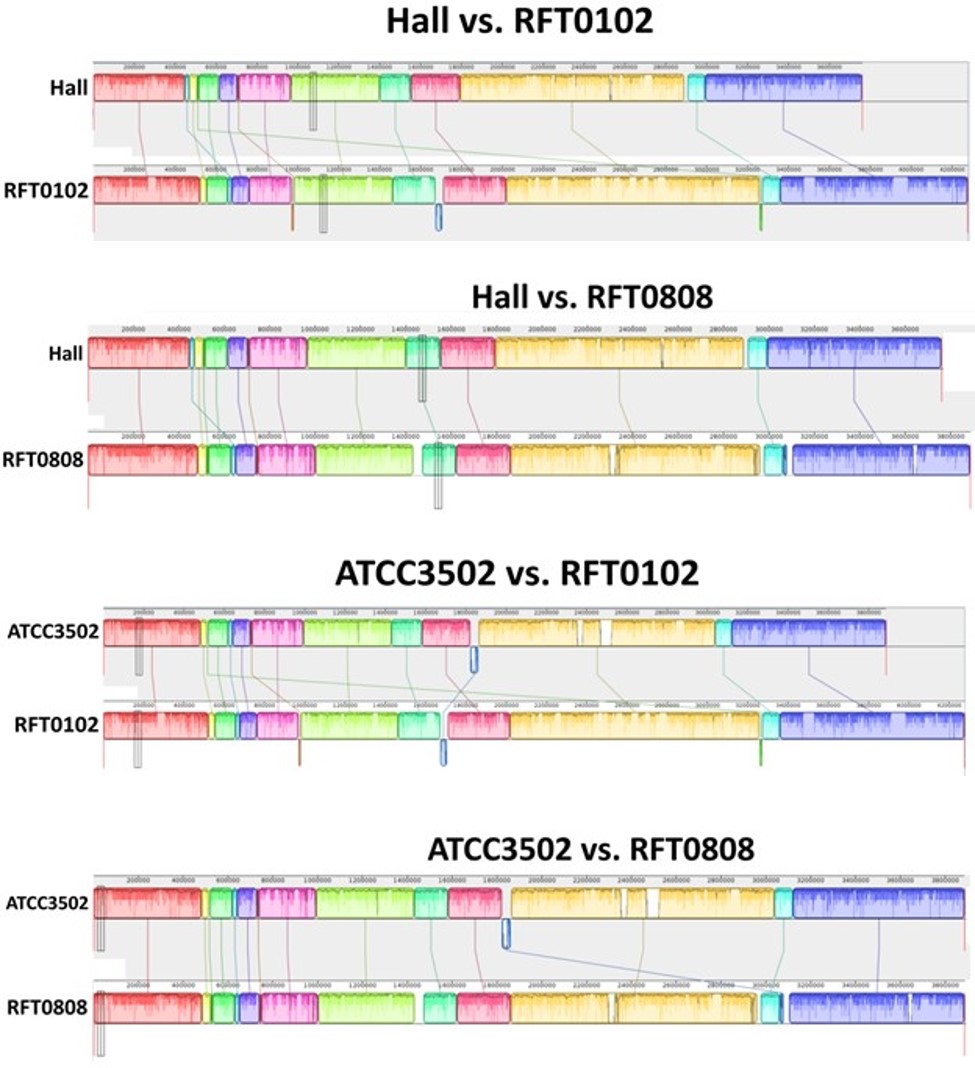 알에프바이오 관계자는 “유전체 분석 전문기관을 통해 자사 균주들의 전체 염기서열을 분석했으며, 자사의 보툴리눔 균주가 'Hall A Hyper’와 'ATCC 3502’뿐 아니라 지금까지 발표된 보툴리눔 균주들과는 완전히 다른 독자적인 균주라는 사실을 확인했다”며 “Hall A Hyper는 엘러간, 메디톡스, 대웅제약이 ATCC 3502는 멀츠, 제테마 등이 사용하고 있는 균주로 알려져 있다”고 말했다.