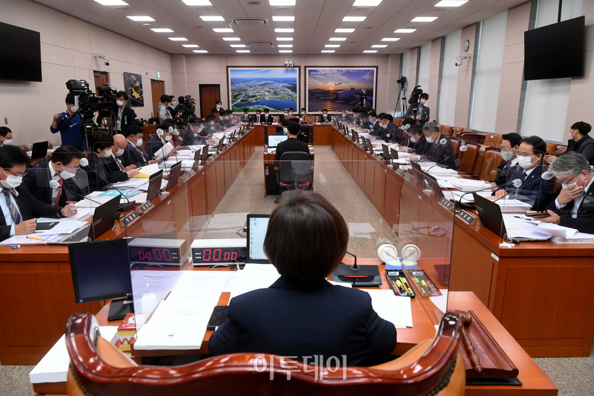 김현미 국토교통부 장관이 3일 서울 여의도 국회에서 열린 국토교통위원회 전체회의에서 제안설명을 하고 있다.