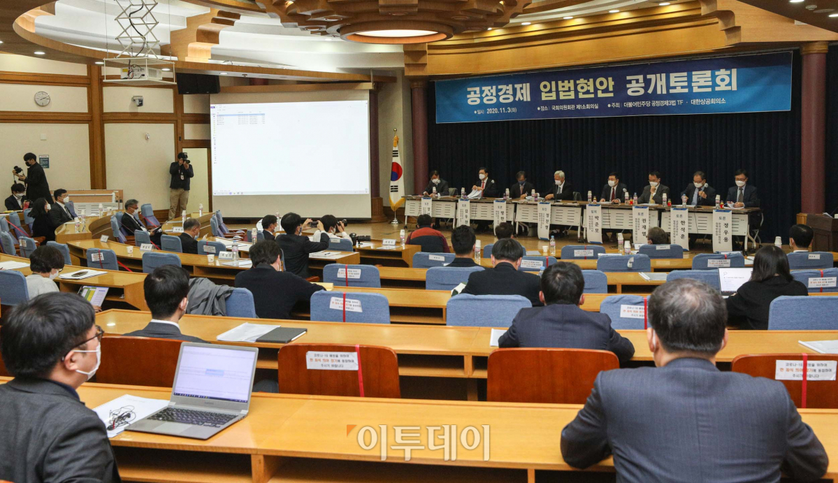 3일 오후 서울 여의도 국회 의원회관에서 공정경제 입법현안 공개토론회가 열리고 있다.