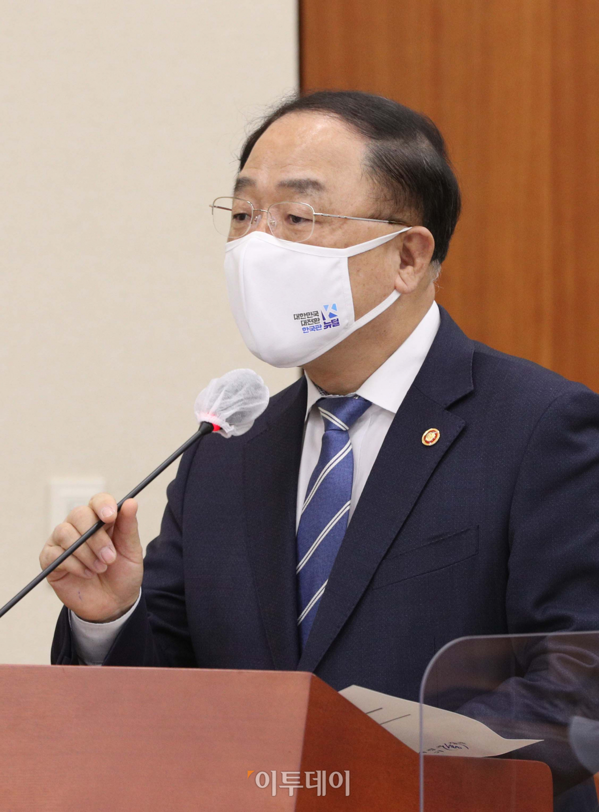 홍남기 경제부총리 겸 기획재정부 장관이 3일 오후 서울 여의도 국회에서 열린 기획재정위원회 전체회의에서 2021년도 예산안 제안 설명을 하고 있다.