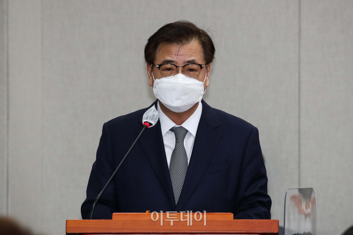 서훈 국가안보실장이 4일 오전 국회에서 열린 운영위원회 청와대 대통령비서실, 국가안보실, 대통령경호처에 대한 국정감사에서 업무보고 하고 있다.