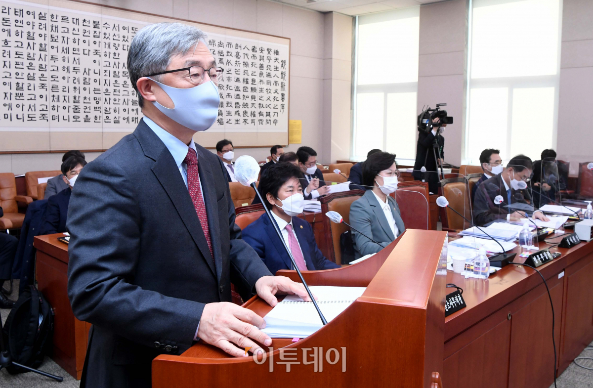 최재형 감사원장이 5일 서울 여의도 국회에서 열린 법제사법위원회 전체회의에서 제안설명을 하고 있다.