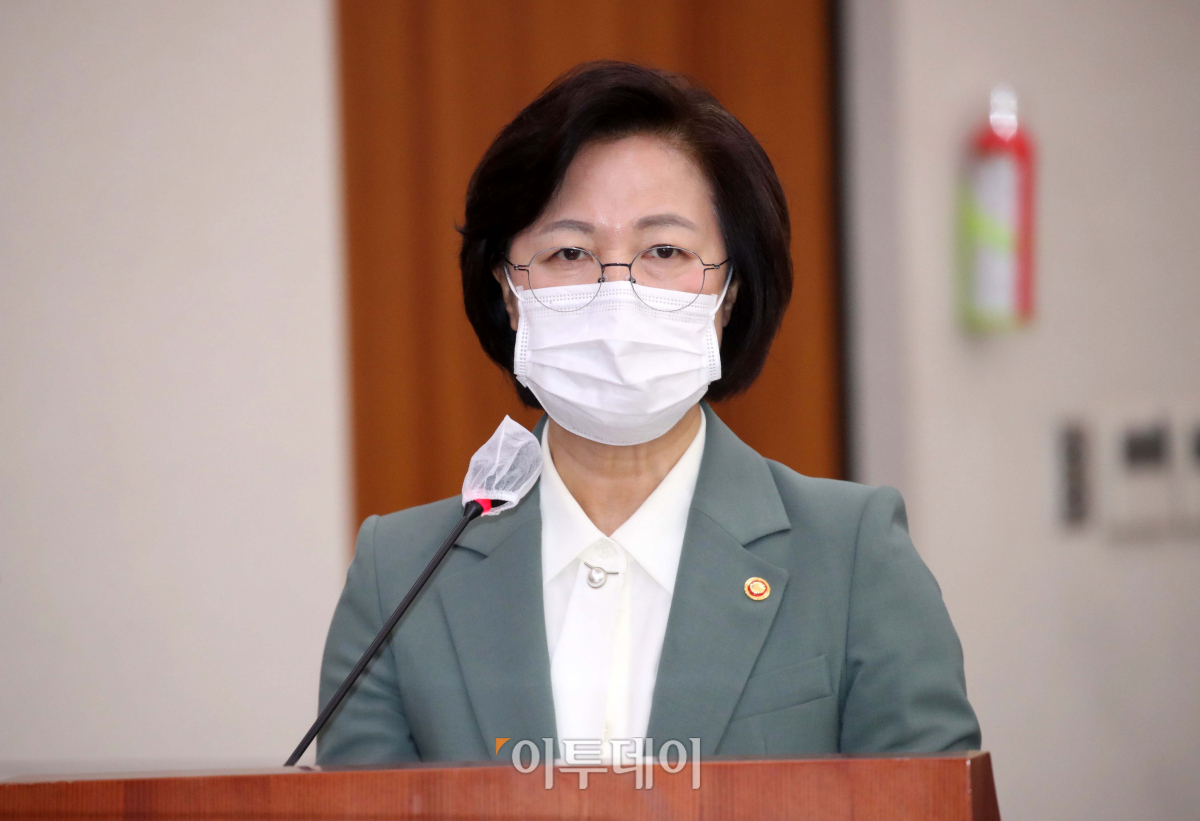추미애 법무부장관이 5일 서울 여의도 국회에서 열린 법제사법위원회 전체회의에서 제안설명을 하고 있다.