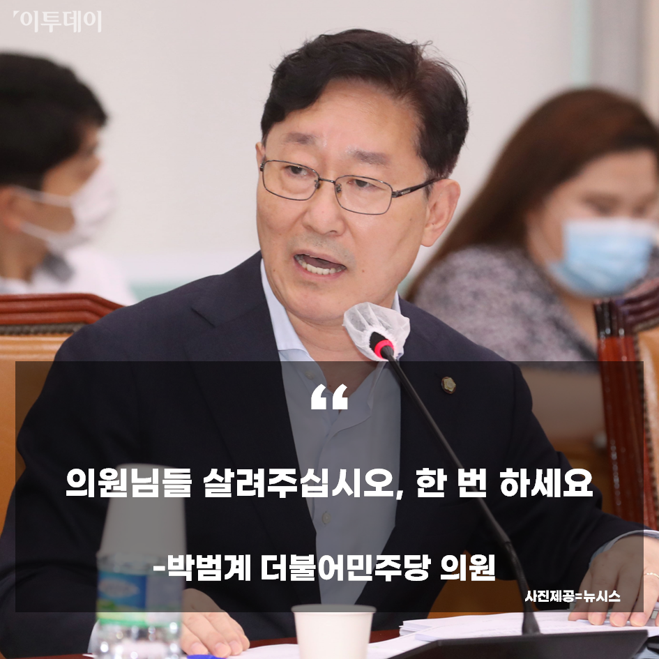 더불어민주당 박범계 의원이 대법관인 조재연 법원행정처장에게 "의원님들 살려주십시오, 한 번 하세요"라고 발언해 논란이 됐습니다.