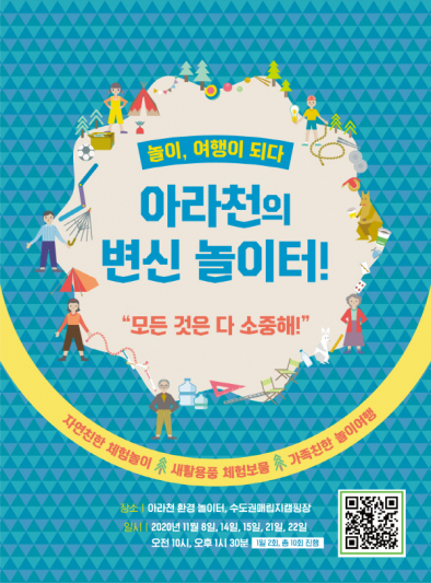 생태와 환경을 소재로 한 가족체험여행 ‘놀이, 여행이 되다 – 아라천의 변신 놀이터’가 인천광역시 서구의 아라뱃길 일원에서 11월 한 달간 주말마다 진행된다.