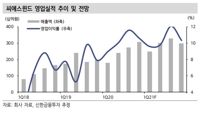 신한금융투자는 10일 씨에스윈드에 대해 2021년 선진국들의 본격적인 뉴딜 정책 집행으로 2022년 신규 풍력 생산용량 집계치 상승과 수주 성장이 예상된다며 목표주가 16만 원과 투자의견 '매수'를 유지했다.