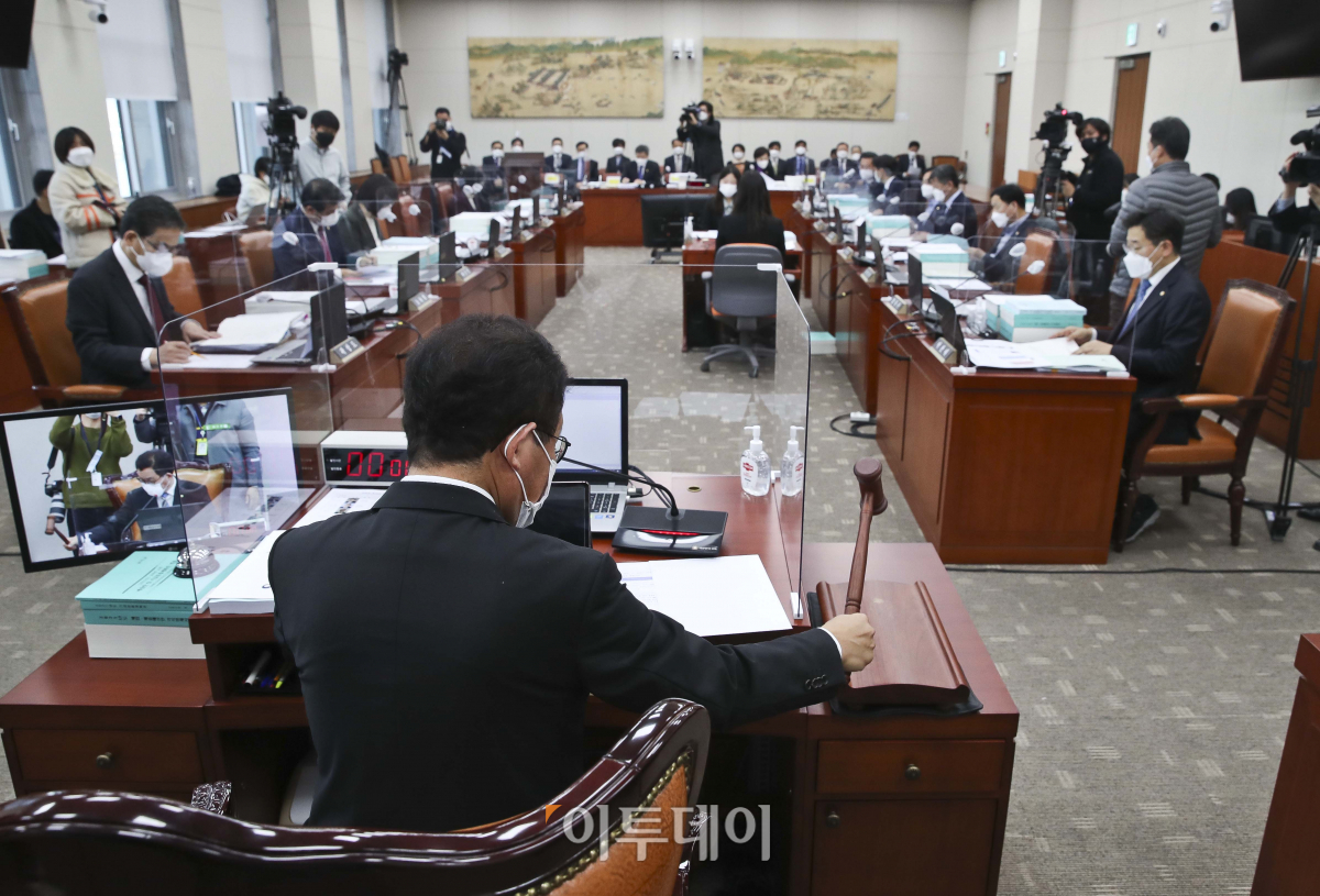 유기홍 교육위원장이 10일 오전 서울 여의도 국회에서 열린 교육위원회 전체회의에서 의사봉을 두드리고 있다.