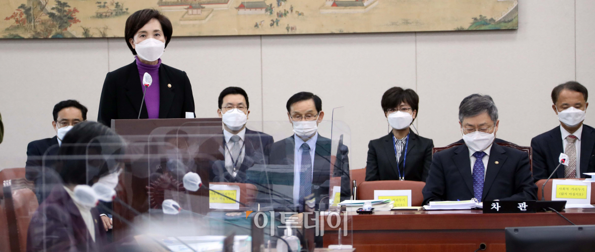유은혜 부총리 겸 교육부 장관이 10일 새해 예산안 및 기금운용계획안 심사를 위해 열린 국회 교육위 전체회의에서 제안설명을 하고 있다.