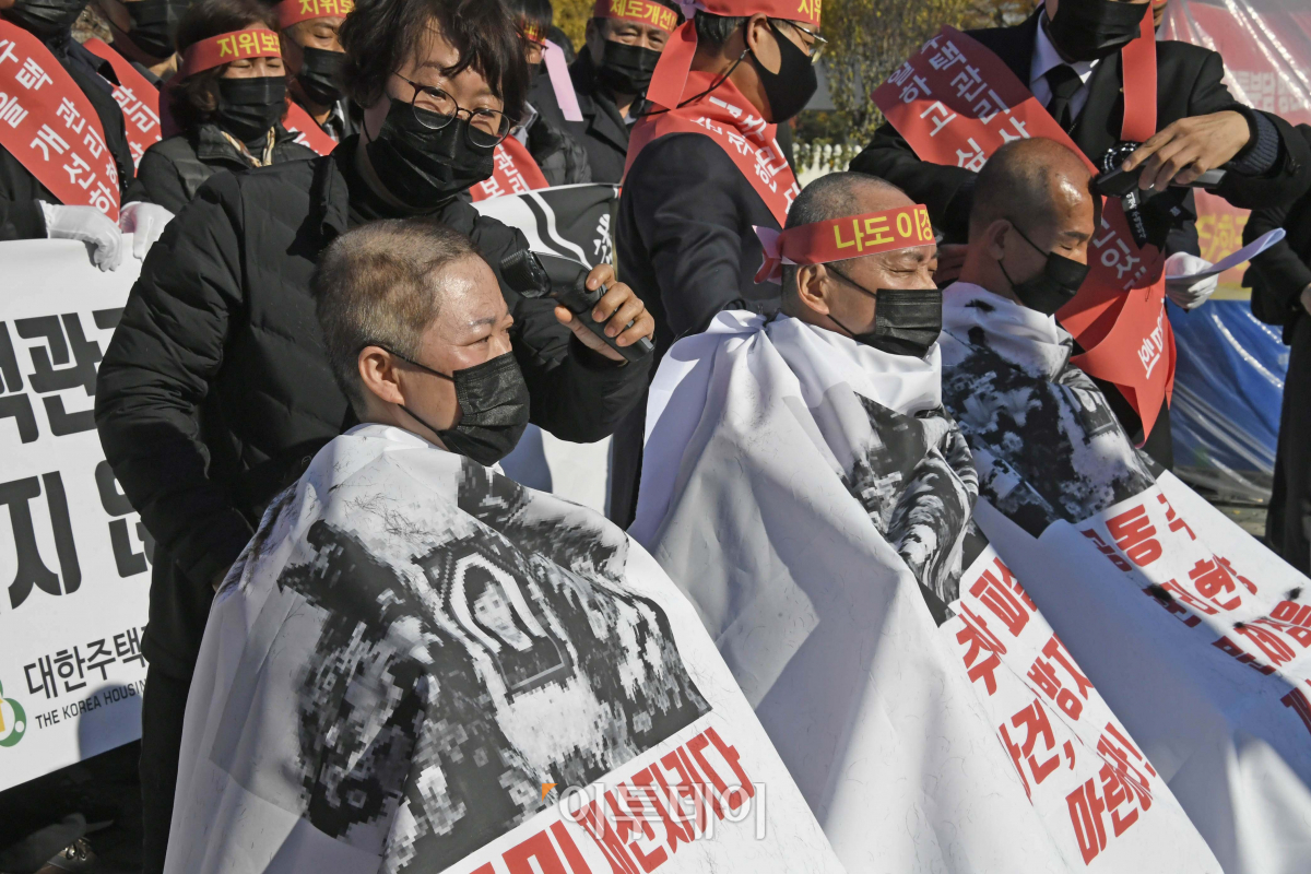 [포토] '인권보호, 삭발하는 주택관리사협회 관계자들'