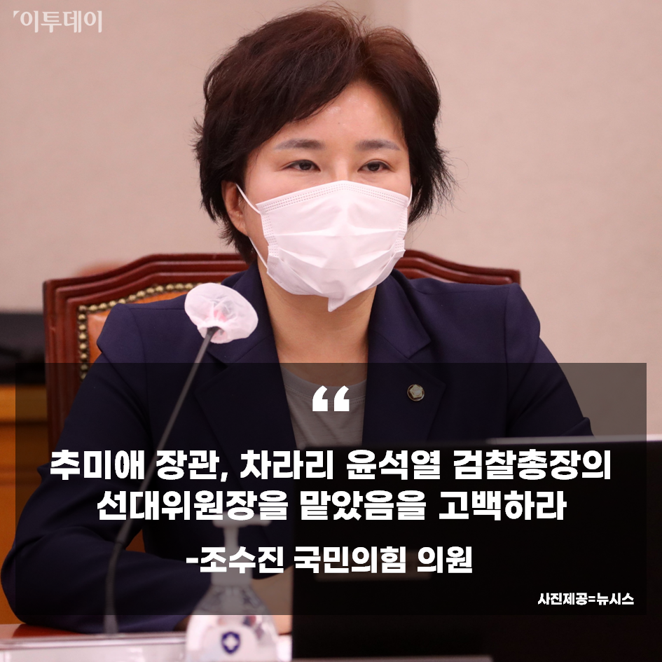 조수진 국민의힘 의원이 추미애 법무부 장관을 향해 "윤석열 검찰총장의 선대위원장을 맡았음을 깨끗이 고백하라"고 비판했습니다.