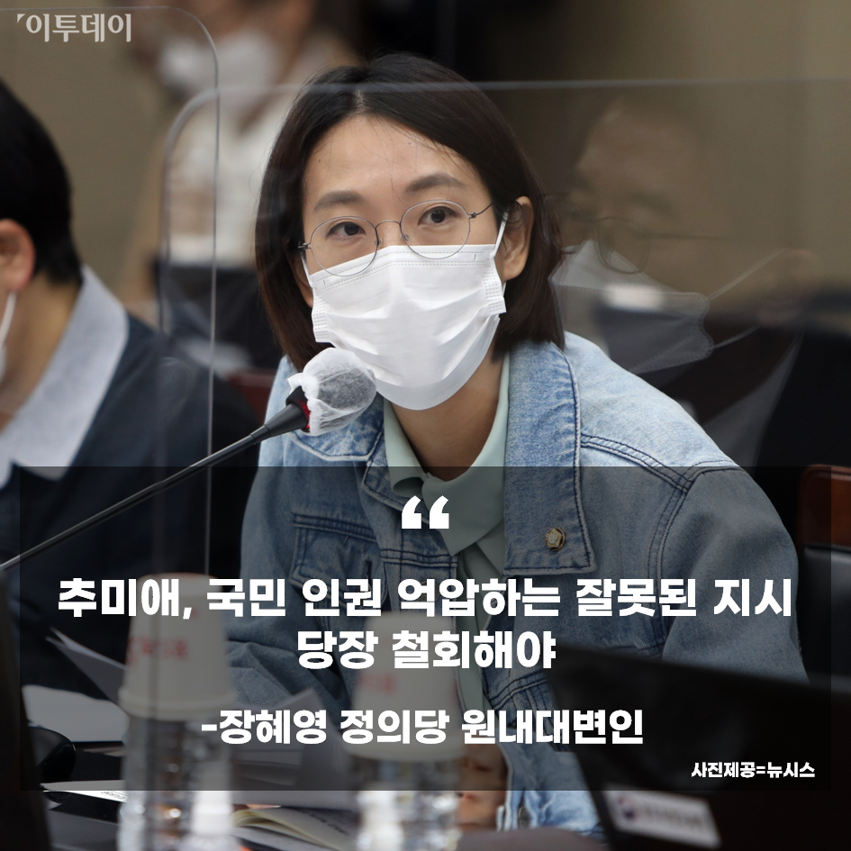 장혜영 원내대변인은 이날 논평을 내고 "추미애 장관은 국민 인권을 억압하는 잘못된 지시를 당장 철회하고 국민께 사과하라"고 촉구했습니다.