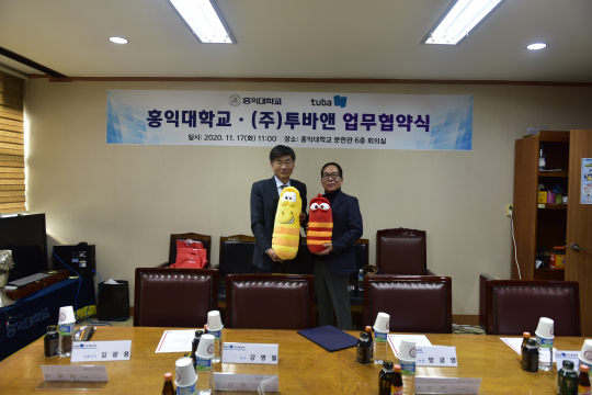 양우석 홍익대 총장은 “좋은 기회를 만들어주셔서 감사하며, 홍익대학교와 (주)투바앤이 산업 협약을 통해 상호 협력할 것”이라고 말했다.