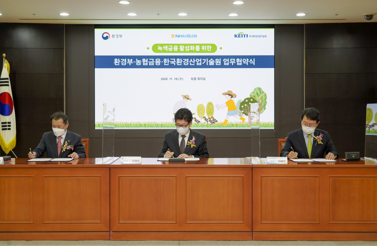 NH농협금융지주, 환경부, 한국환경산업기술원은 이번 협약을 통해 사회·경제 전반의 녹색전환을 지원하기 위해 녹색금융 분야에 대한 협력사업을 추진할 예정이다.