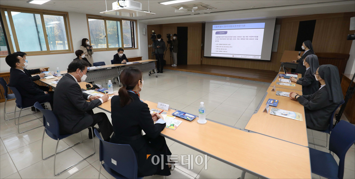 이낙연 더불어민주당 대표가 19일 오전 서울 동대문구 서울시립아동상담치료센터에서 가진 아동학대예방의 날 현장방문에서 센터 관계자의 브리핑을 듣고 있다. 국회사진취재단