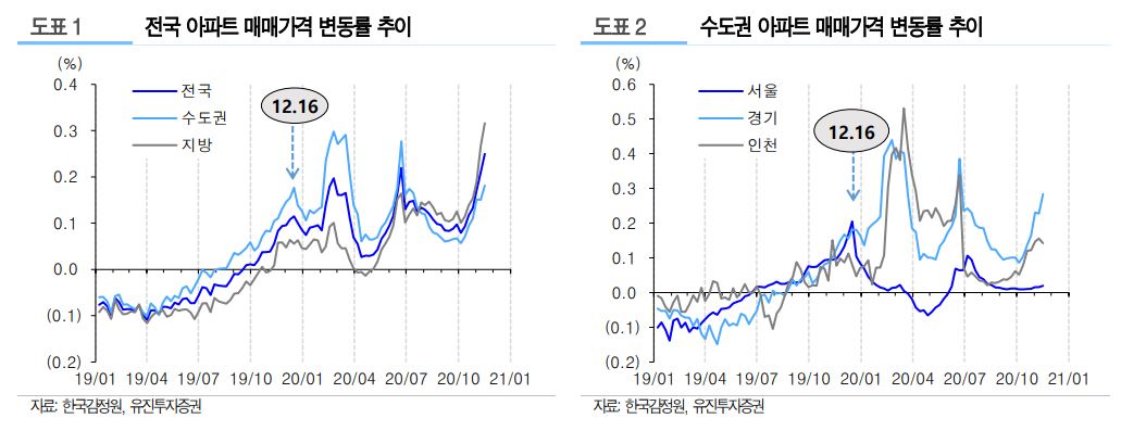 유진투자증권은 23일 "전국 아파트 매매가격 상승률은 한국감정원에서 통계를 작성한 2012년 5월 이후 최고치를 기록했다"고 평가했다.