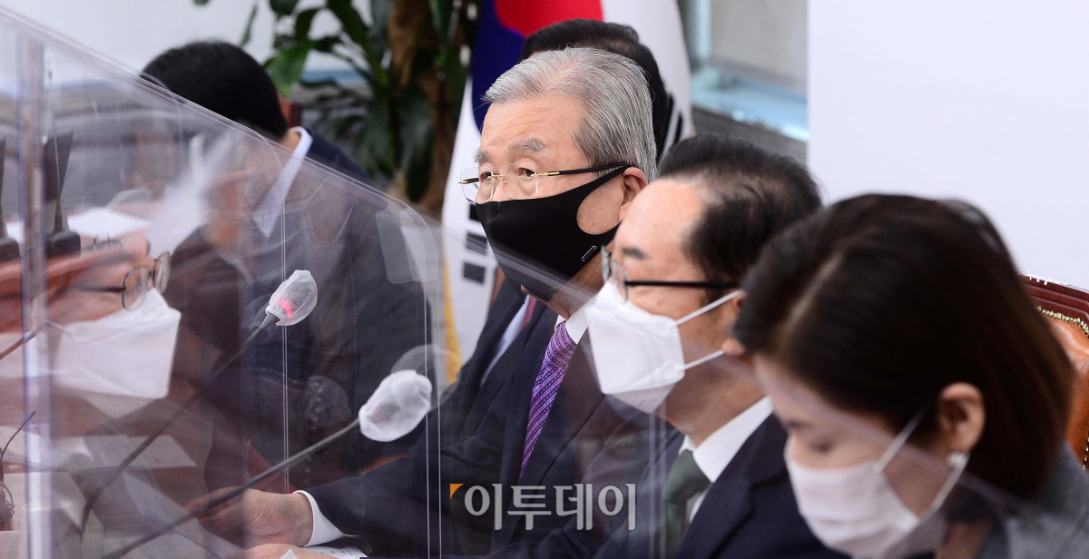 국민의힘 김종인 비상대책위원장이 23일 오전 서울 여의도 국회에서 열린 비상대책위원회의에서 발언을 하고 있다.
