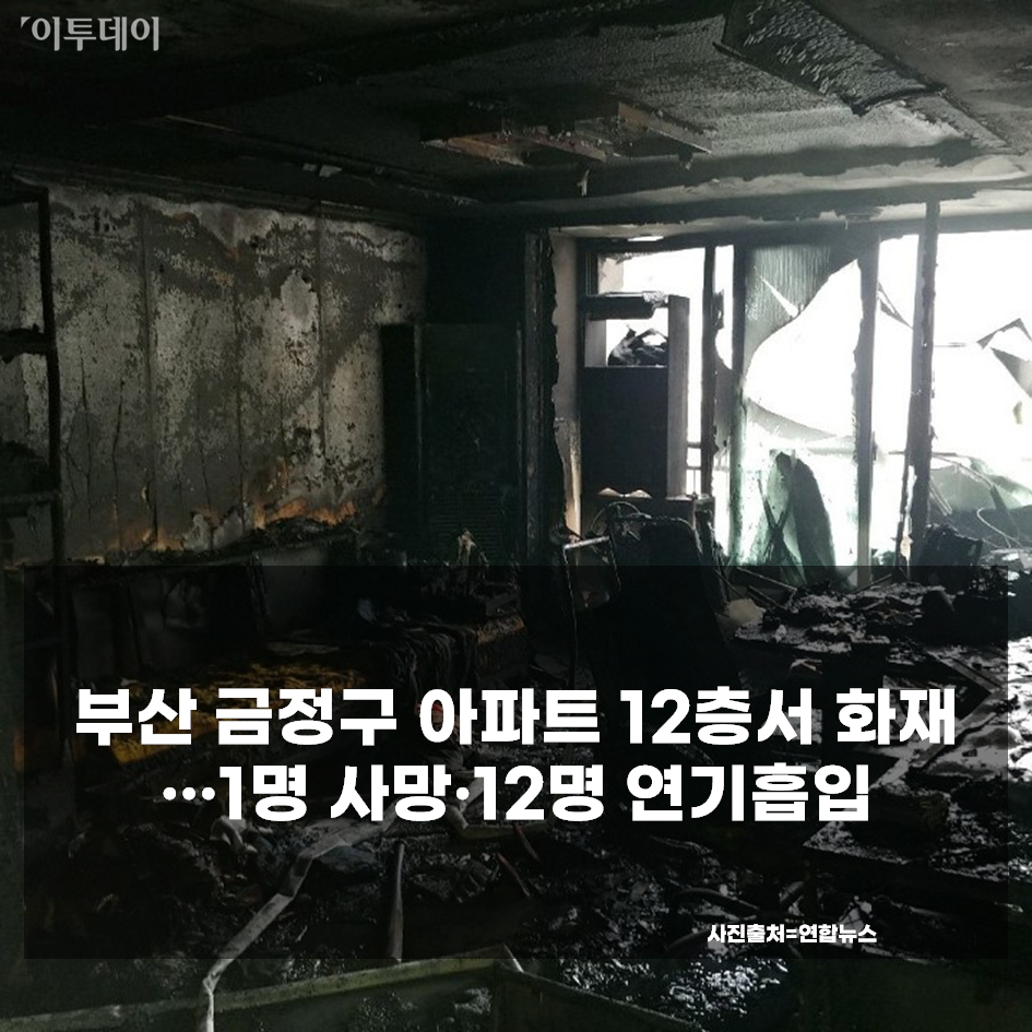 부산 금정구에 있는 한 아파트에서 불이 나 1명이 사망하고 12명이 연기를 흡입했습니다.