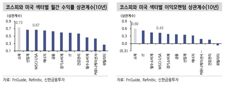 그러면서 "미국 소재 섹터는 국내 주식시장과 주가, 이익 측면에서 모두 상관성이 높다"며 "화학, 건축자재, 용기 및 포장지, 금속 및 채광 4개의 산업 성과도 모두 양호하다"고 평가했다.