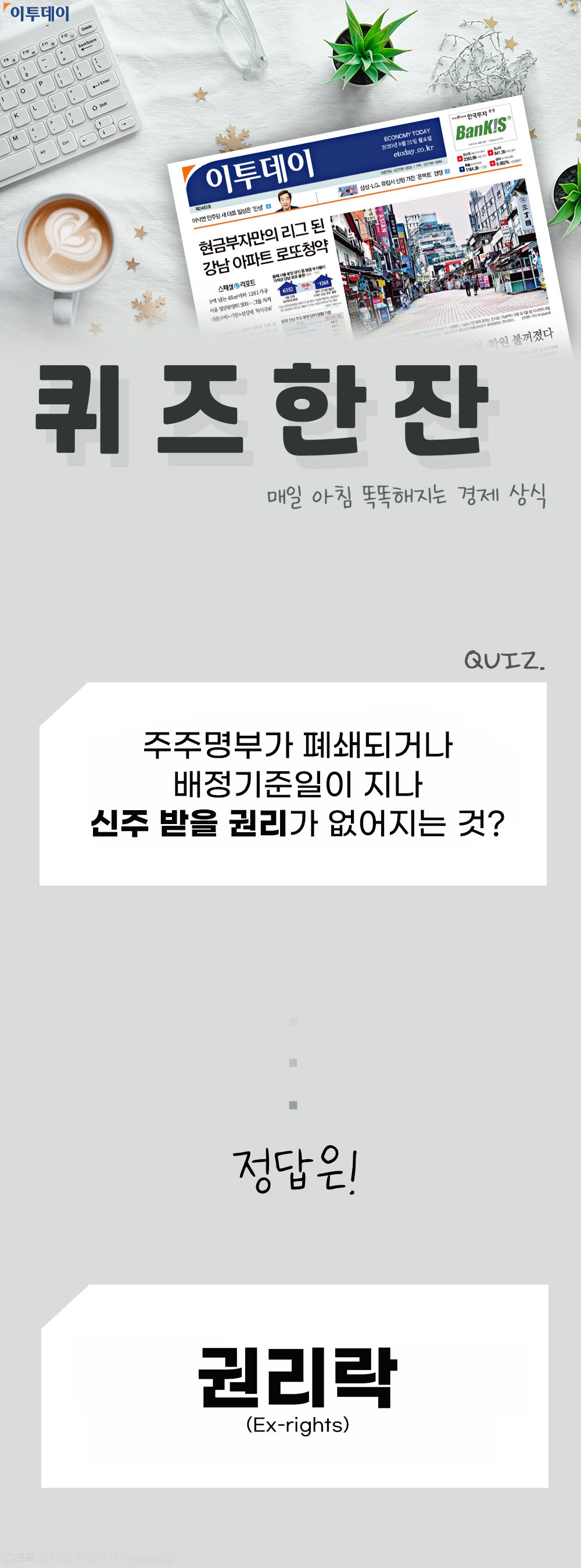 이것은 기업이 증자나 배당을 할 때, 주식을 소유하고 있더라도 주주 명부가 폐쇄되거나 배정기준일이 지나 신주를 받을 권리가 없어지는 것을 말한다. 최근 미국에서 코로나 백신 임상을 추진한다는 사실이 알려지며 주목을 받은 유바이오로직스가 최근 유상증자를 하며 12일 이것을 발생시킨 바 있다. 이것은 무엇일까?