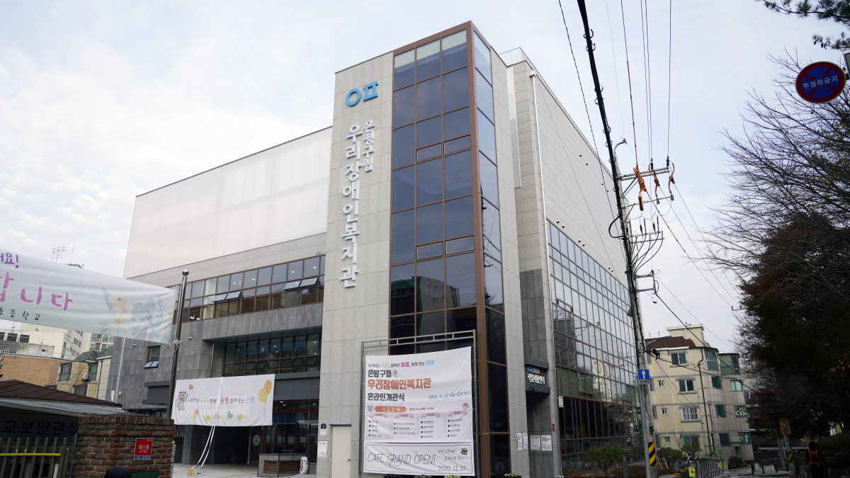 은평구립 우리장애인복지관은 대지 1,662㎡에 지하 1층부터 지상 4층까지 건축연면적 2,945㎡ 규모로 건축되었다. 시설로는 직업재활센터와 인근 주민 편의를 위한 체력단련실 및 카페가 1층에 들어섰으며, 2층에는 장애인을 위한 다양한 프로그램실과 물리활동실, 소규모 독서공간과 스튜디오, 3층에는 통합사무실과 다목적실, 4층에는 강당과 식당으로 구성되어 있다.