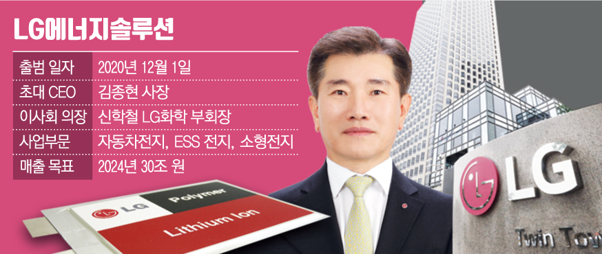 글로벌 1위 배터리 회사 ‘LG에너지솔루션’이 공식 출범했다. 2024년 매출 30조 원을 목표로 ‘세계 최고의 에너지 솔루션 기업’으로 발돋움한다는 포부다.