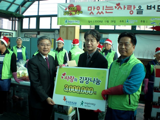 한국증권금융(사장 이두형)은 26일 구로구 구로5동에 위치한 구로노인복지관에서 임직원 20여명이 참석한 가운데 2008 김장나눔축제 행사를 가졌다.