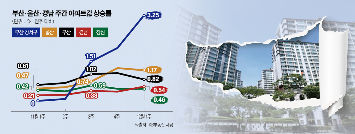 6일 KB부동산 통계에 따르면 이달 첫째 주 부산 강서구 아파트 매매가격은 일주일 새 3.25% 급등했다. 전국에서 가장 높은 상승률이다.