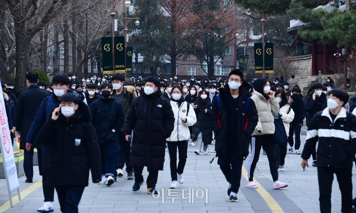 서울 주요 대학의 2021학년도 수시모집 논술고사가 진행된 6일 서울 종로구 성균관대에서 수험생들이 교정을 나서고 있다. 이날 논술고사를 치른 대학들은 코로나19 확산 방지를 위해 수험생 외 학부모 등 일반인의 학내 출입을 금지했다.