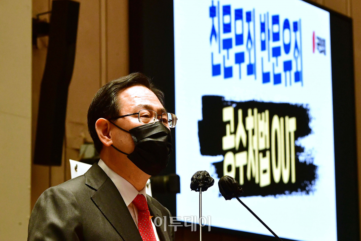 국민의힘 주호영 원내대표가 7일 국회에서 열린 당 의원총회에서 모두발언을 하고 있다.