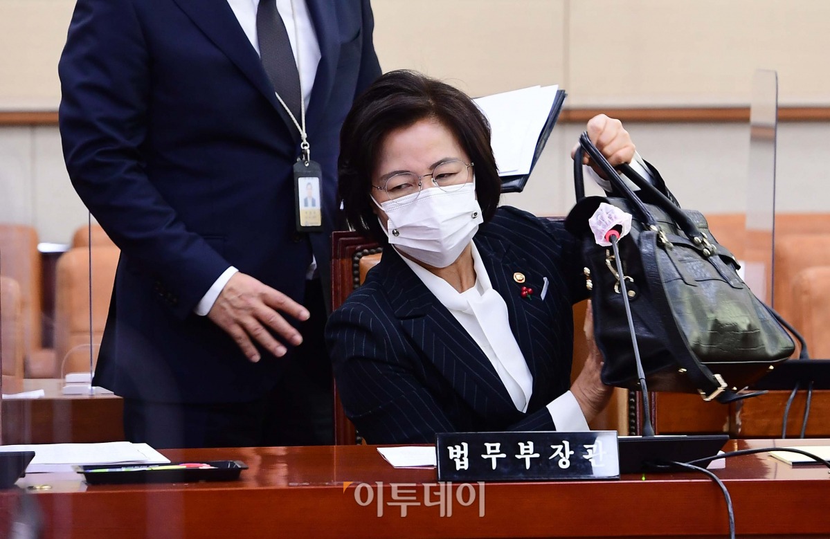 8일 서울 여의도 국회에서 열린 법제사법위원회 전체회의에서 고위공직자범죄수사처(공수처)법 개정안 등이 통과되자 추미애 법무부 장관이 회의장을 나서고 있다.
