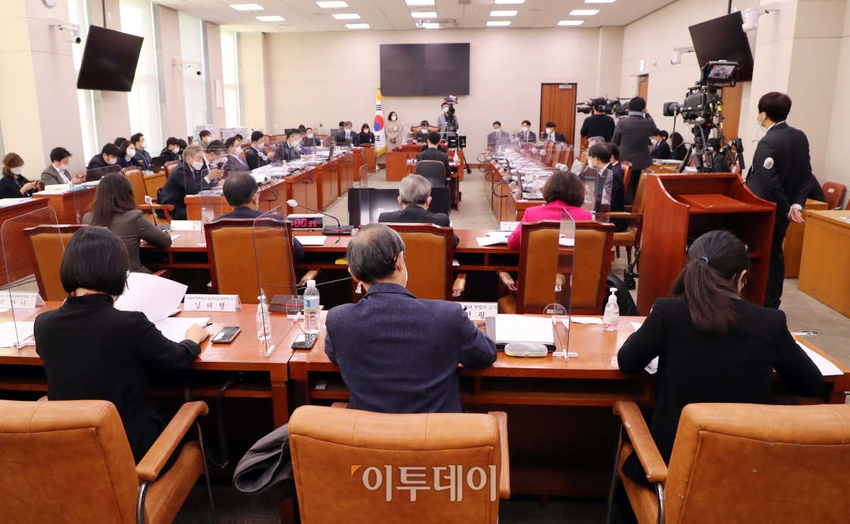 8일 서울 여의도 국회에서 열린 법제사법위원회 전체회의가 고위공직자범죄수사처(공수처)법 개정안 등이 통과되자 국민의힘과 국민의당 의원들이 퇴장한 가운데 낙태죄 관련 형법 개정안 공청회가 진행되고 있다.