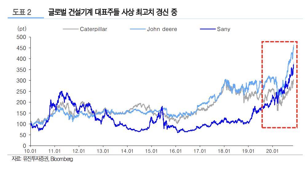 그는 “미국은 바이든 대통령 당선인이 그린 산업뿐 아니라 도로, 철도, 교량 등 낡은 인프라에 대한 대대적인 투자를 할 것으로 판단된다”면서 “유럽과 일본도 코로나 팬데믹이 축소되면서 경기부양 정책들이 가동되면 관련 건설기계 수요가 회복될 것으로 보인다“고 설명했다.