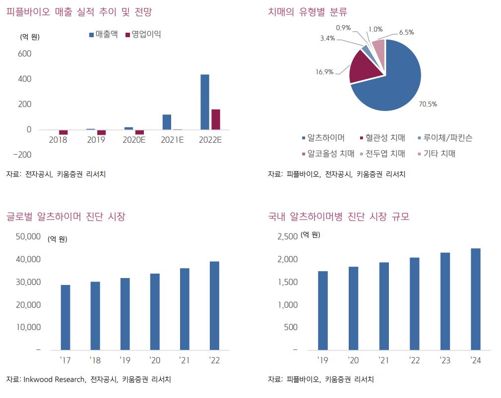 허 연구원은 “통상 알츠하이머 진단에는 아밀로이드 단층촬영검사(PET)가 사용되는데, 국내는 120~180만 원 해외는 4000~5000달러 소요로 가격이 비싸고, 방사선 노출 위험도 존재한다”면서 “피플바이오 제품은 10분의 1 가격 수준으로 가격 경쟁력과 혈액 진단으로 환자 편의성도 보유하고 있다”고 설명했다.