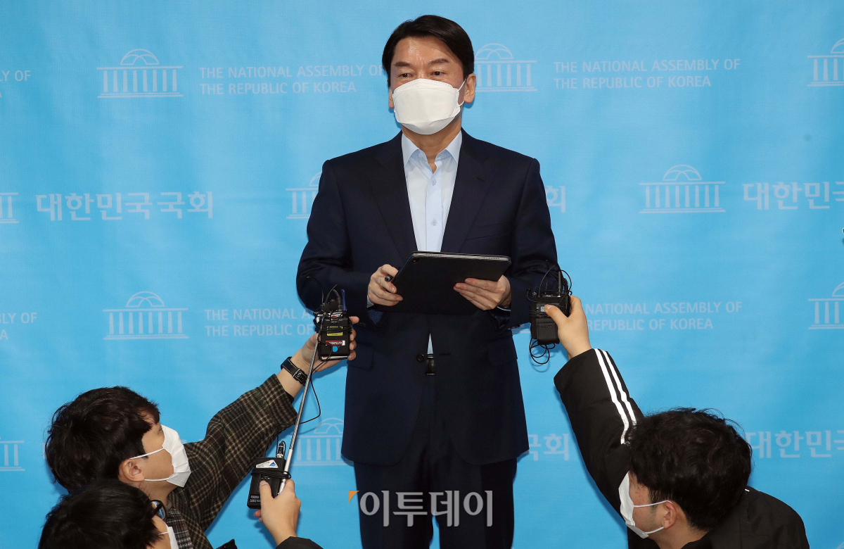 안철수 국민의당 대표가 20일 오전 서울 여의도 국회 소통관에서 기자회견을 갖고 서울시장 보궐선거 출마선언을 마치고 취재진 질문에 답하고 있다.