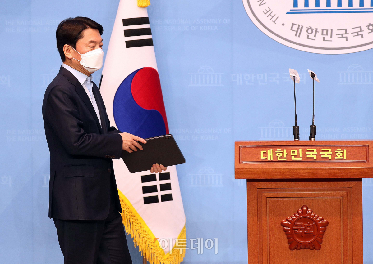 안철수 국민의당 대표가 20일 오전 서울 여의도 국회 소통관에서 기자회견을 갖고 서울시장 보궐선거 출마선언을 하기위해 단상으로 향하고 있다.