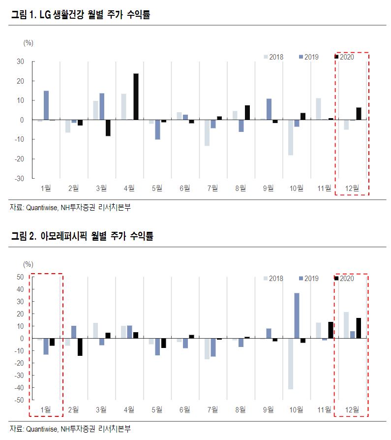 조미진 NH투자증권 연구원은 "지난 3년간 두 업체 주가는 상반된 계절성을 나타냈다"며 "국내 톱 화장품 브랜드 업체인 LG생활건강과 아모레퍼시픽의 주가는 사드(한미 고고도미사일방어체계) 이슈 이후 상반된 계절성을 보여 왔다"고 설명했다.