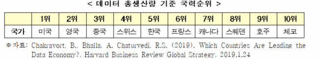 데이터 생산량(Gross Data Product) 기준으로 한국은 ‘글로벌 5강’에 속한다. 미국 터프츠대학 연구팀에 따르면, 한국은 전 세계에서 미국, 영국, 중국, 스위스에 이어 다섯 번째로 데이터생산량이 높은 국가다.