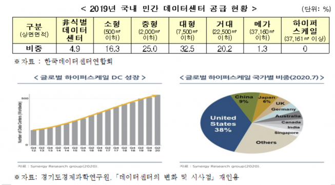 하지만 국내에선 하이퍼 스케일 데이터센터 구축은 갓 첫발을 뗀 상태다. 지난달 KT는 서버 10만 대를 수용할 수 있는 센터를 처음 개소했을 뿐 우리나라의 데이터센터는 대부분 중대형급 이하다.