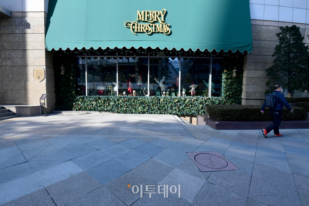 코로나19 재확산 기세를 꺾기 위해 5인 이상 모든 사적 모임을 제한하는 등 연말연시 특별 방역대책이 시행된 가운데 24일 서울 명동 거리가 크리스마스이브임에도 썰렁하다.