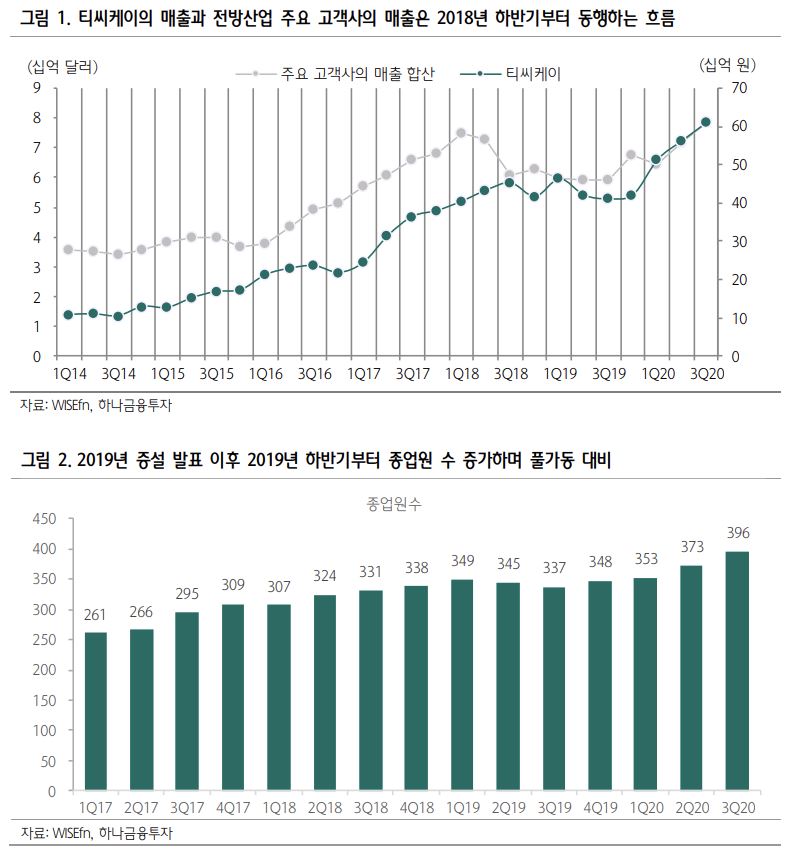 이어 김 연구원은 “2020년 현재, 해당 부지의 장비입고는 아직 진행 중이고 설비가 늘어나는 상황”이라면서 “중장기적으로 풀가동 가시성을 드러내는 지표는 종업원 수의 증가세”라고 판단했다. 최근 4개 분기 동안 종업원의 수는 348명, 353명, 373명, 396명으로 늘어났다.