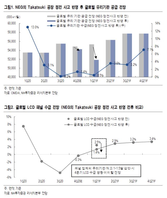 지난 12월 10일 NEG의 일본 다카쓰키(Takatsuki) 공장에서 정전 사고가 발생, 해당 공장 정상화는 2021년 1분기에 가능할 것으로 업계는 보고 있다. 1분기 국내와 대만 패널 업체의 유리기판 소싱이 원활하지 않을 것이란 판단이다.