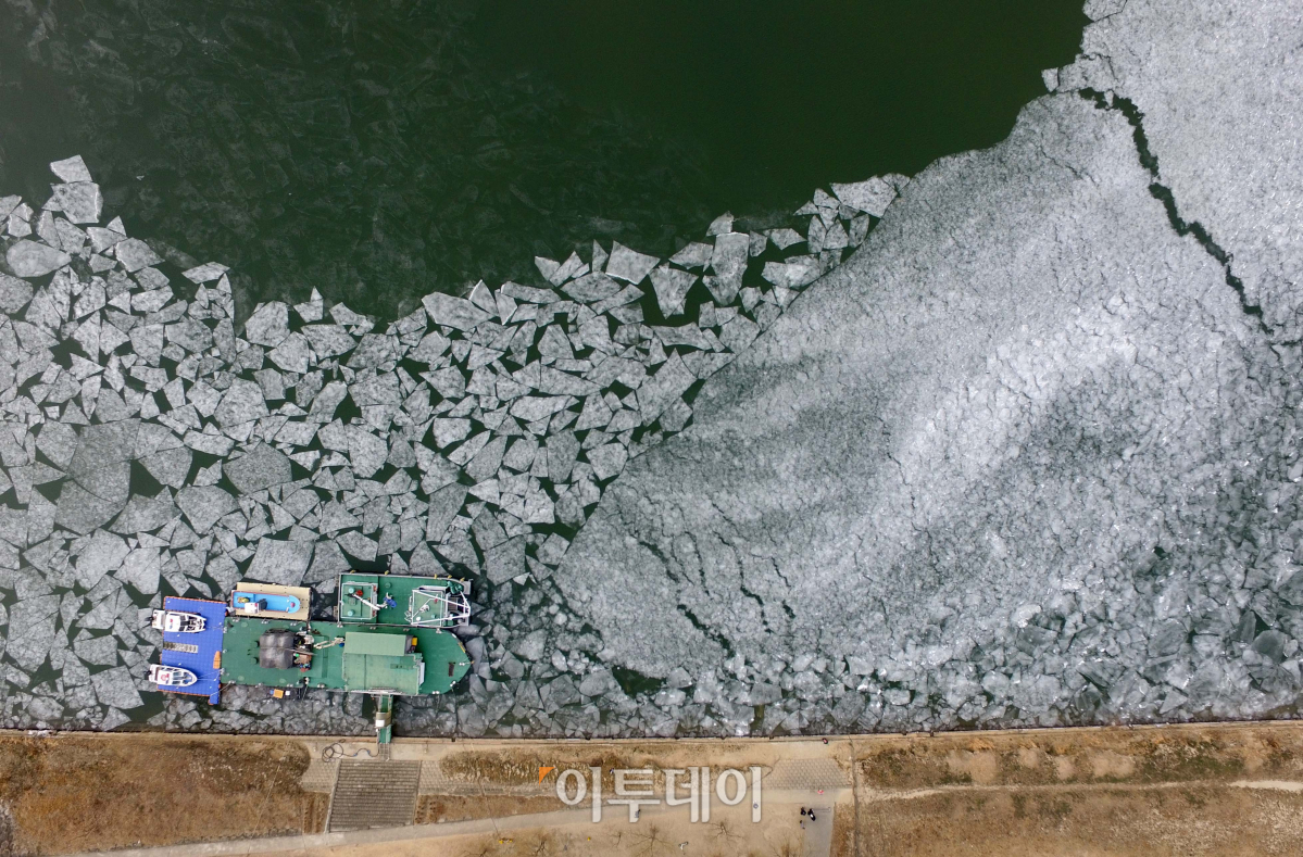 전국에 강추위가 이어지고 있는 가운데 3일 서울 강동구 광나루한강공원 일대 한강이 얼어붙어 있다. 기상청은 다음 주 수요일 아침 최저기온이 영하 11도를 나타내고 금요일엔 영하 17도까지 곤두박질치는 등 주 중반부터 더욱 강력한 한파가 찾아올 것으로 예상했다.